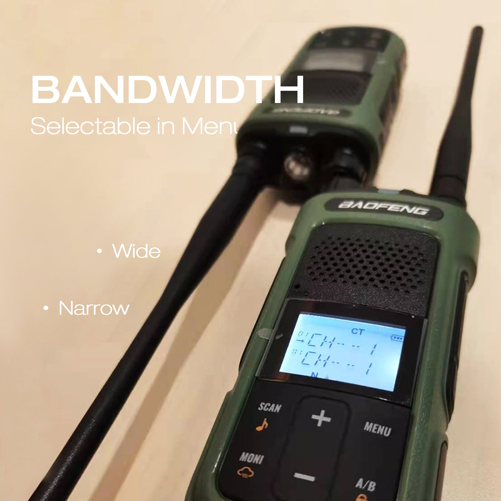 2. GMRS radios allow WIDE-BAND FM to provide a louder and clearer signal. FRS radios are restricted to only Narrow-band FM with a lower power rating.——In addition, G11S provides easy bandwidth selection on MENU 14.