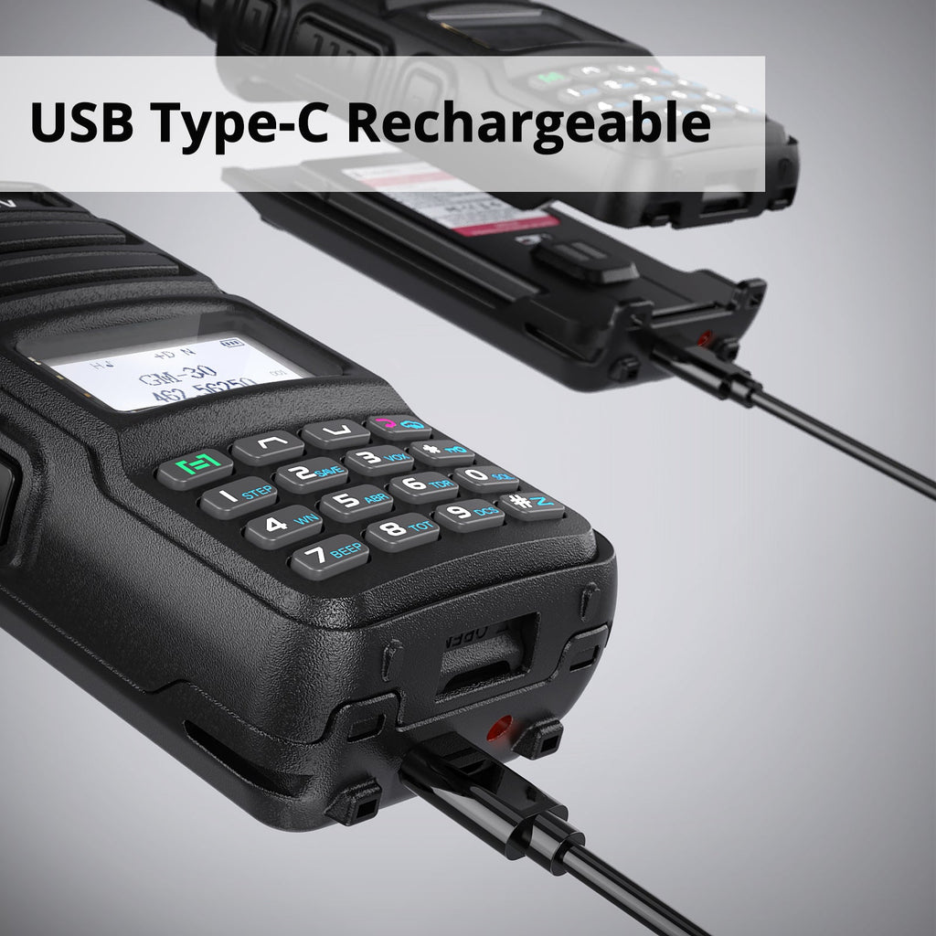 Long Range & USB Rechargeable - With the high power of 5-Watt and the capability to hit GMRS repeaters, it can go up to 5 Miles, which is more suitable for group & outdoor activities than FRS radios. Equipped with an upgraded USB Type-C charging port, users can charge the radio or just the battery more convenient.