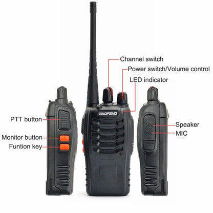 The BF-888S Handie-Talkie is a tough little workhorse at an unheard-of price! It can keep workers connected inside warehouses, outside at construction sites or over 4+ miles in open-air locations. You won't have to worry if one is damaged or lost. Instead of $400 a radio, these are the cost of a pack of cigarettes and a cup of coffee. These are ready to use - or you can program them easily with your company's channels using our in-expensive programming cable and free software.