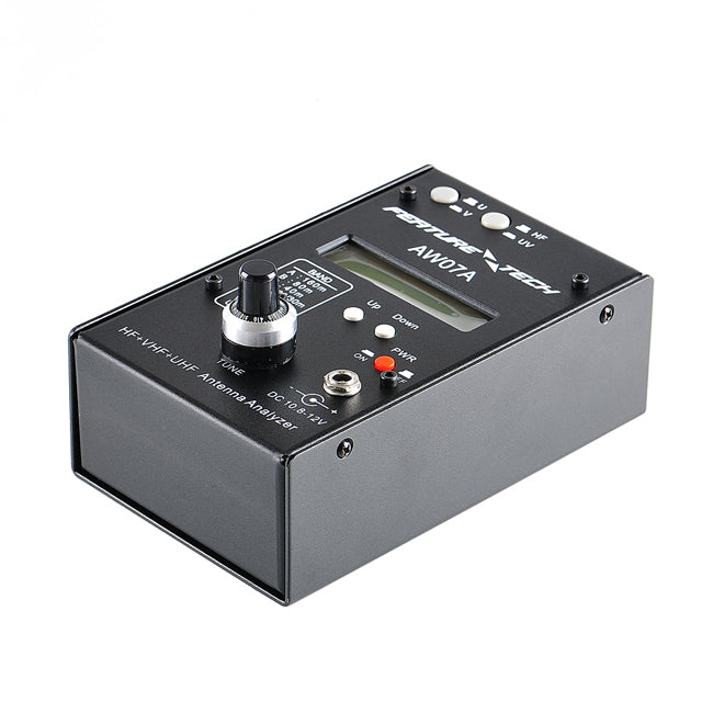 AW07A antenna analyzer is a compact battery powered RF impedance analyzer. It can test the SWR status of your antenna, measure the impedance and reactance component and help you to solve antenna problems. This unit combines six basic parts: a variable oscillator, frequency counter, independent oscillator, 50 ohm RF bridge detector, an A-D converter, and microcontroller. This compact product was built to feed the need for the solid contruction and field test. The operating frequency range of this unit goes from HF, and extends up to 485MHz. The operating frequency range of this unit extends from 1.8 to 66 MHz in six overlapping bands, and includes SWR measurements on 87-190MHz, 225-485MHz.