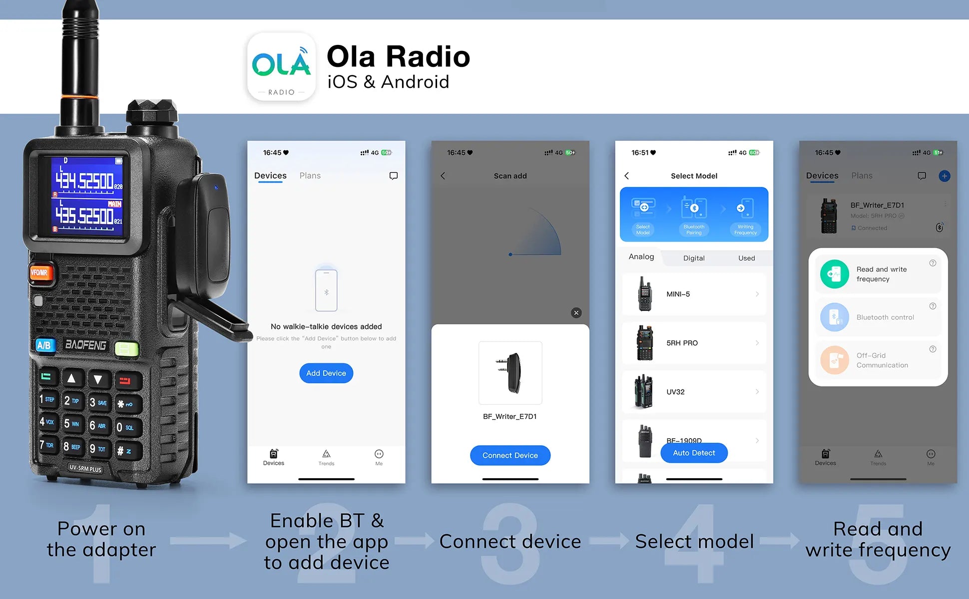 Upgrade your Baofeng radios with the BT-A1D Bluetooth programming adapter—quickly configure channels, edit settings, and manage frequency lists wirelessly via the Ola Radio app on iOS or Android. Compact and portable, it connects directly to your radio with up to 10 meters of Bluetooth range and USB-C charging for true cable-free convenience.