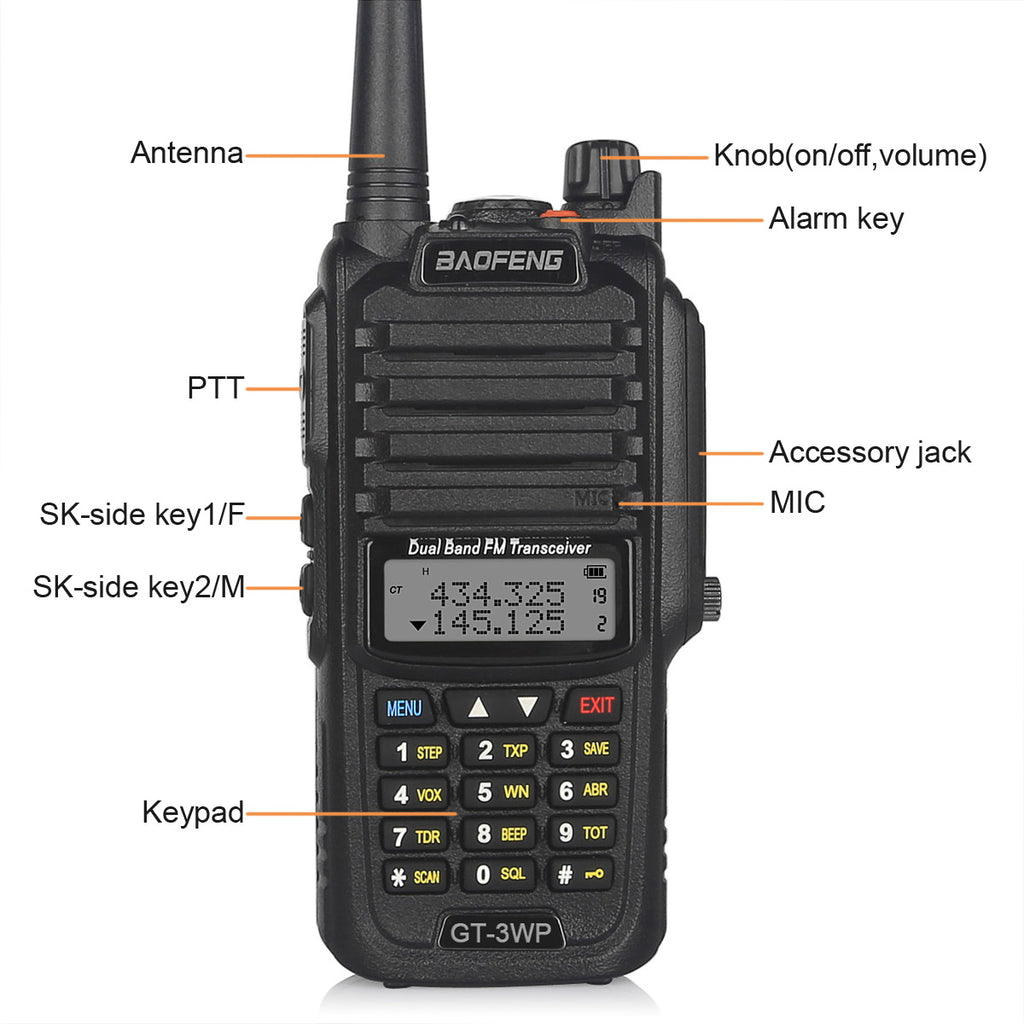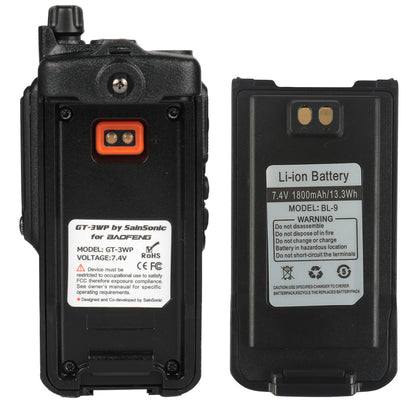 This GT-3WP (5W version of UV9R) is a dustproof and water-resisting handi-talkie. It's rated to resist 30 minutes in one meter underwater. This ensures the GT-3WP's reliability in wet environments. Weather you are at the swimming pool or desert, you have nothing to worry about with the GT-3WP!