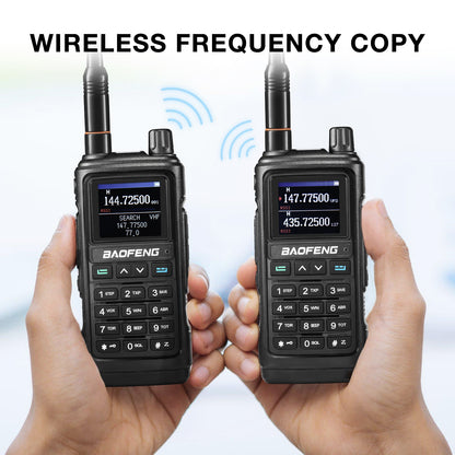 Versatile Frequency Coverage: Receiver Frequency: FM 76-108 MHz; AM 108-136MHz; VHF 136-174MHz, 220-260MHz; UHF 350-390MHz,400-520MHz; 10 NOAA Weather Band. Transmission Frequency: 144-148 & 420-450MHz.