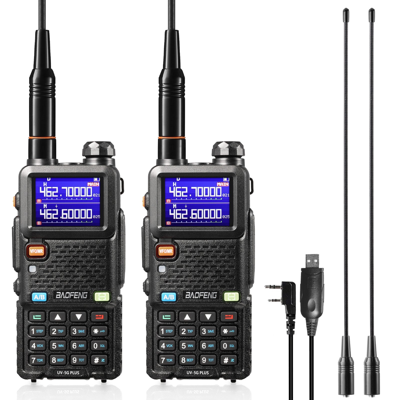 The Baofeng UV-5G Plus is an upgrade from the UV-5G model, boasting a larger channel capacity, a more substantial battery, and a bigger screen. Additionally, it introduces a frequency copy function and supports the USC-C charging method, enhancing its overall functionality and convenience.