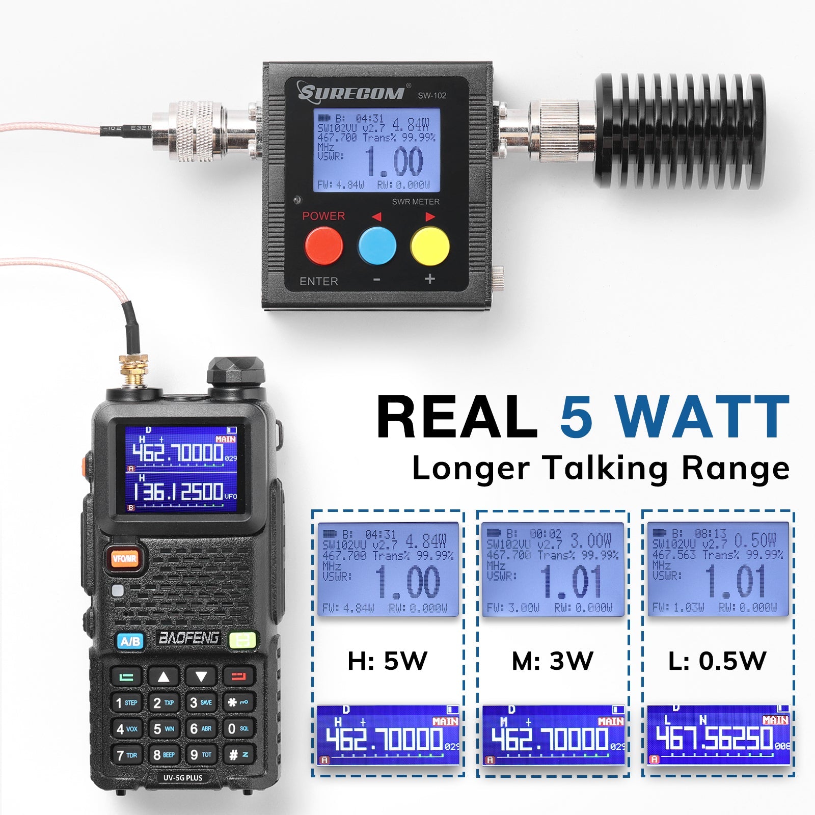 The UV-5G PLUS is equipped with a real 5-watt power output, ensuring a strong and reliable signal for communication over various distances. FCC ID: 2AJGM-5GPLUS. A GMRS license is required.