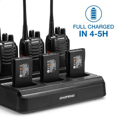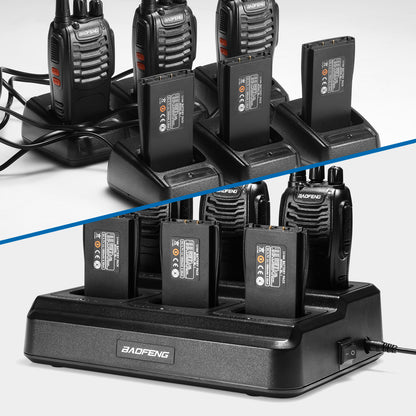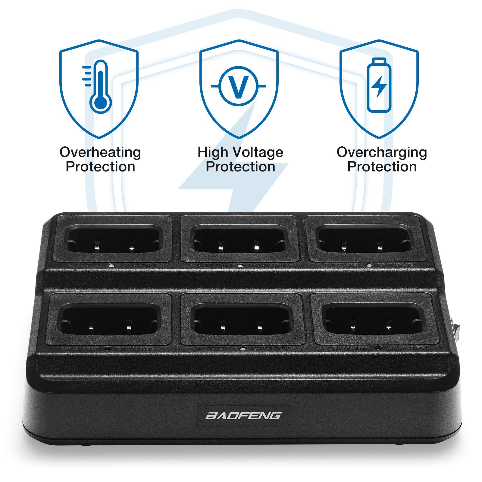 Being fed up with a tangled mess of chargers and wires? This NEW multi-unit charger would help you on saving place and time. Nice clean six-in-one charger allows to charge whole radios or only batteries in same time.