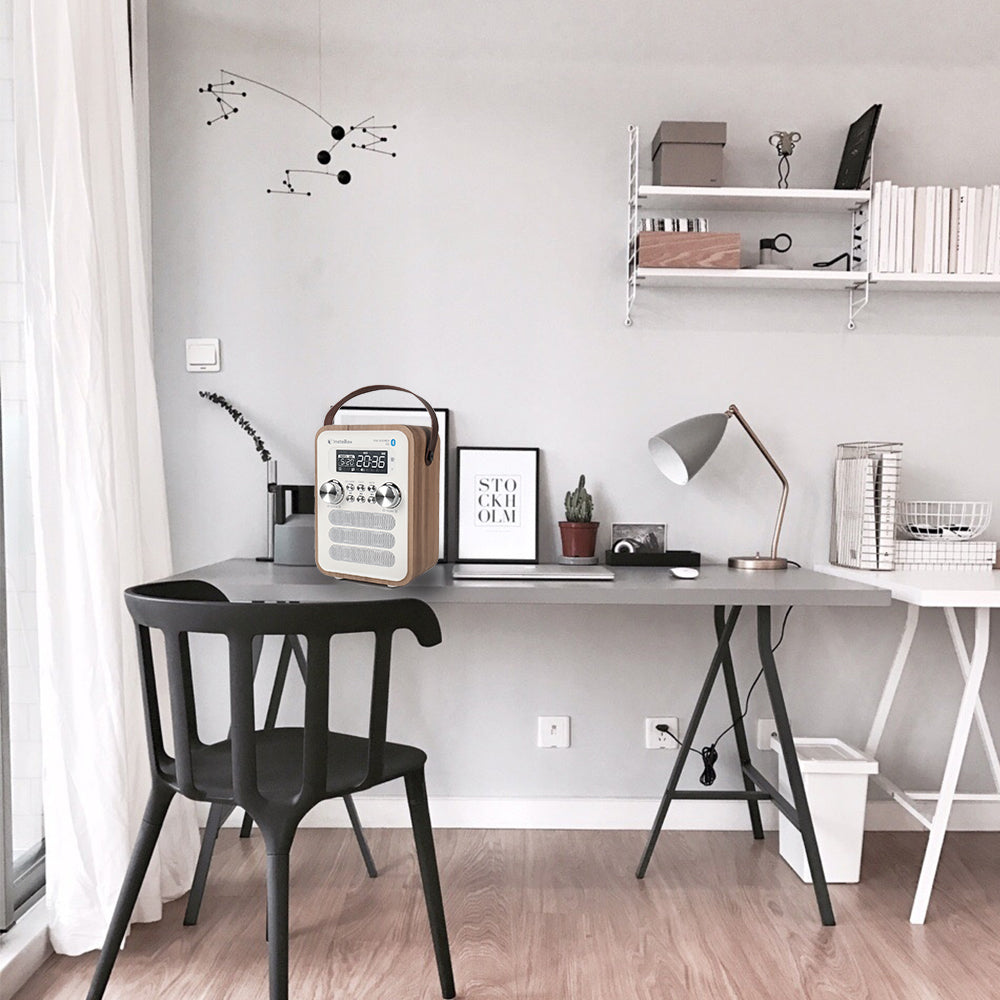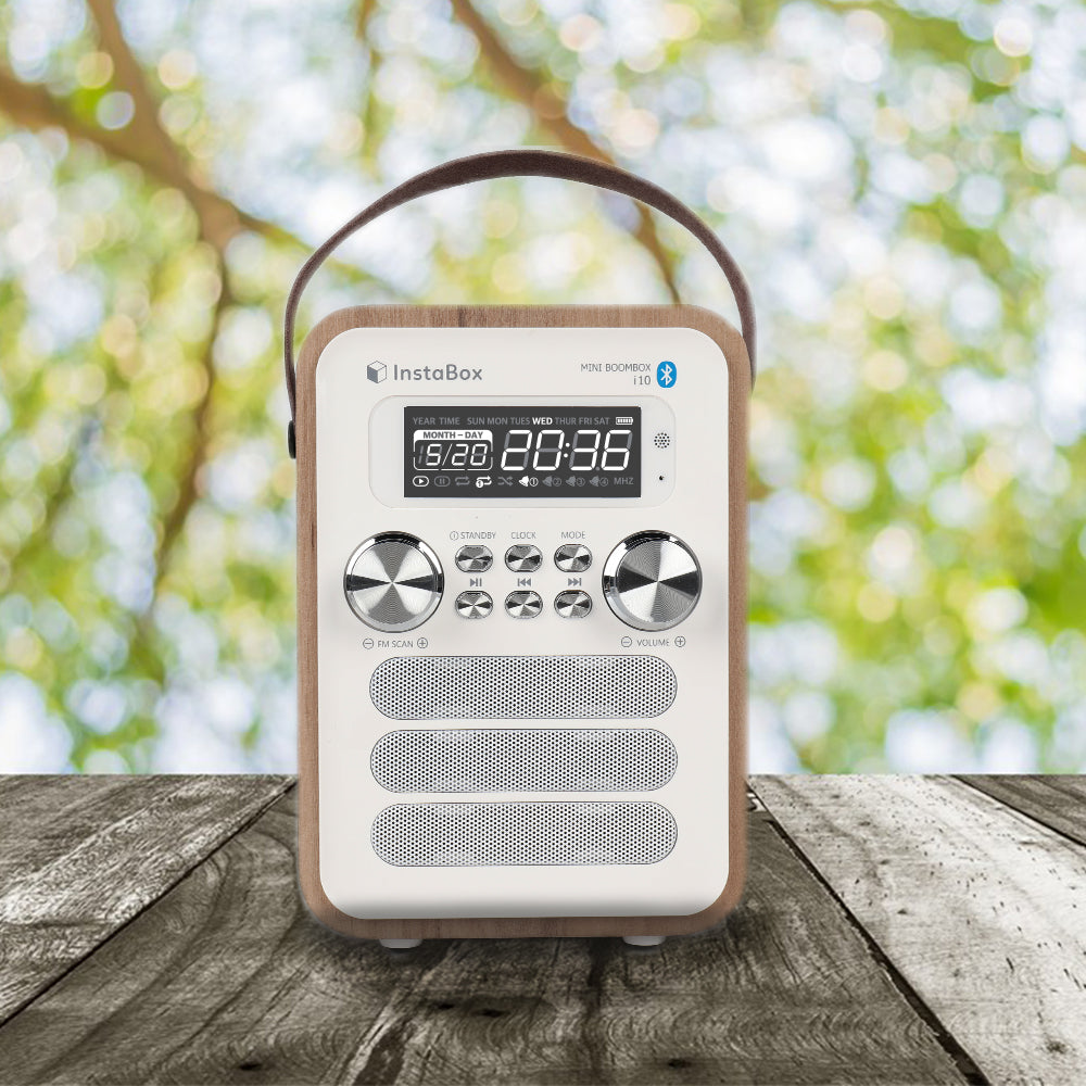 It's an all-in-one multi functional speaker with modern style, and the added handheld strip is perfect for taking it anywhere you want, suitable for both indoor & outdoor activities.