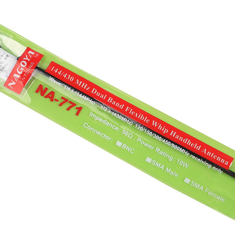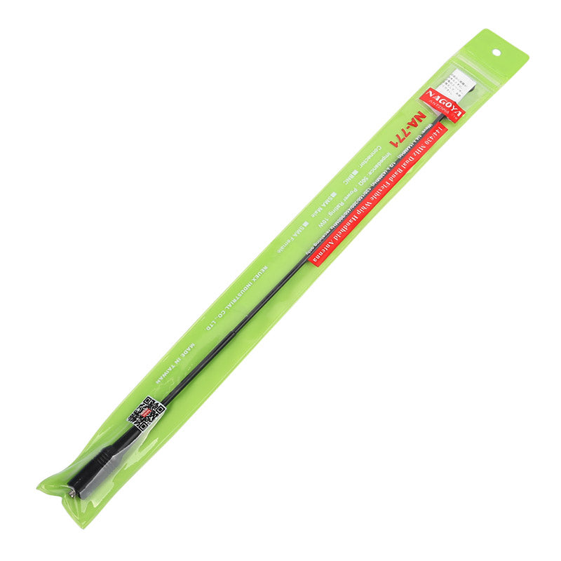 The Original Nagoya N771 Whip Antenna will allow you to get longer range on your handheld radio, like BaoFeng UV-5R radio. This antenna features a 2.15dBi signal with up to 10W of power. It is 40cm in length and weighs 42 grams.