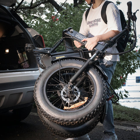 Portable, Foldable Design If you’re a commuter or want to pack your bike in the trunk, simply fold the bike up so it is easier to transport. This is also a great way to save space instead of having your bike sit in the middle of the living room or corner of your garage. |