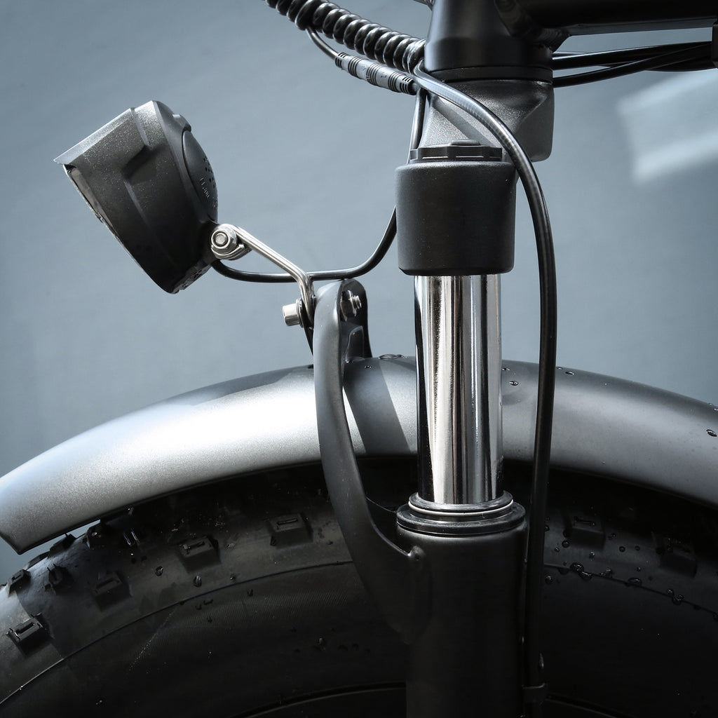 Front Suspension Fork Fat tires and front suspension fork work as an excellent shock absorber system and provide a smooth ride and comfortable steering. |