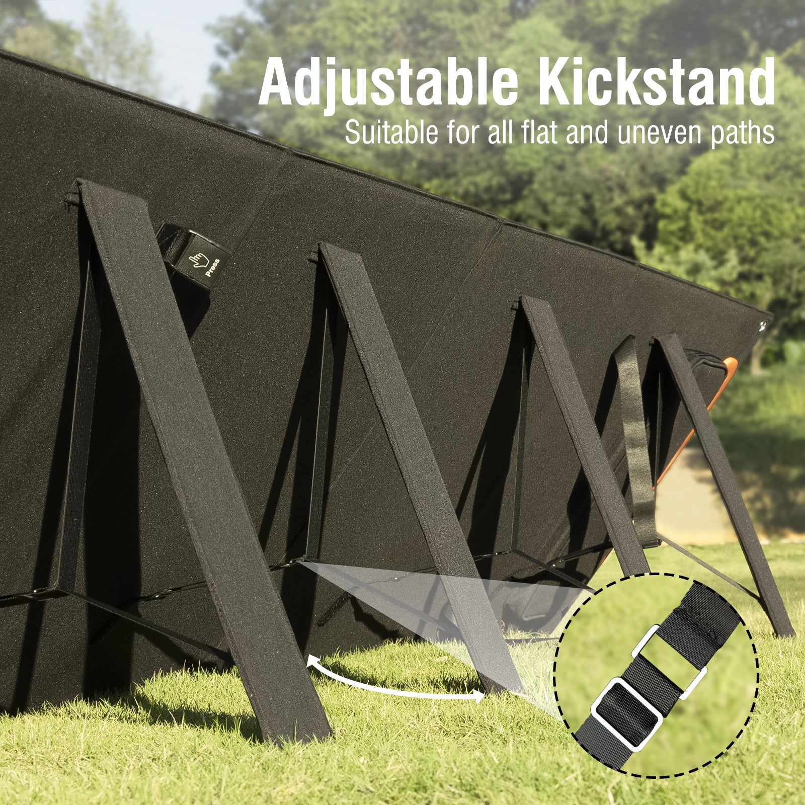 Just adjust the angle of the 4 kickstands on the back, you can easily get the best sun exposure angle. These kickstands have a sliding buckle design, which is more flexible and easier to adjust than ordinary elastic kickstands. The adjustment range is 0-90°, so it can accept 25%~30% more sunlight than lying flat.
