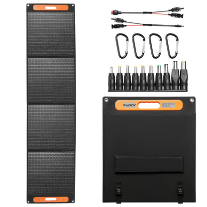 This SP200 solar panel has 1*DC, 1* USB QC, and 2*USB-A output ports, which can quickly charge 4 devices at the same time. It is also equipped with an MC4 connector and various DC connectors, which can compatible with most power stations on the market.
