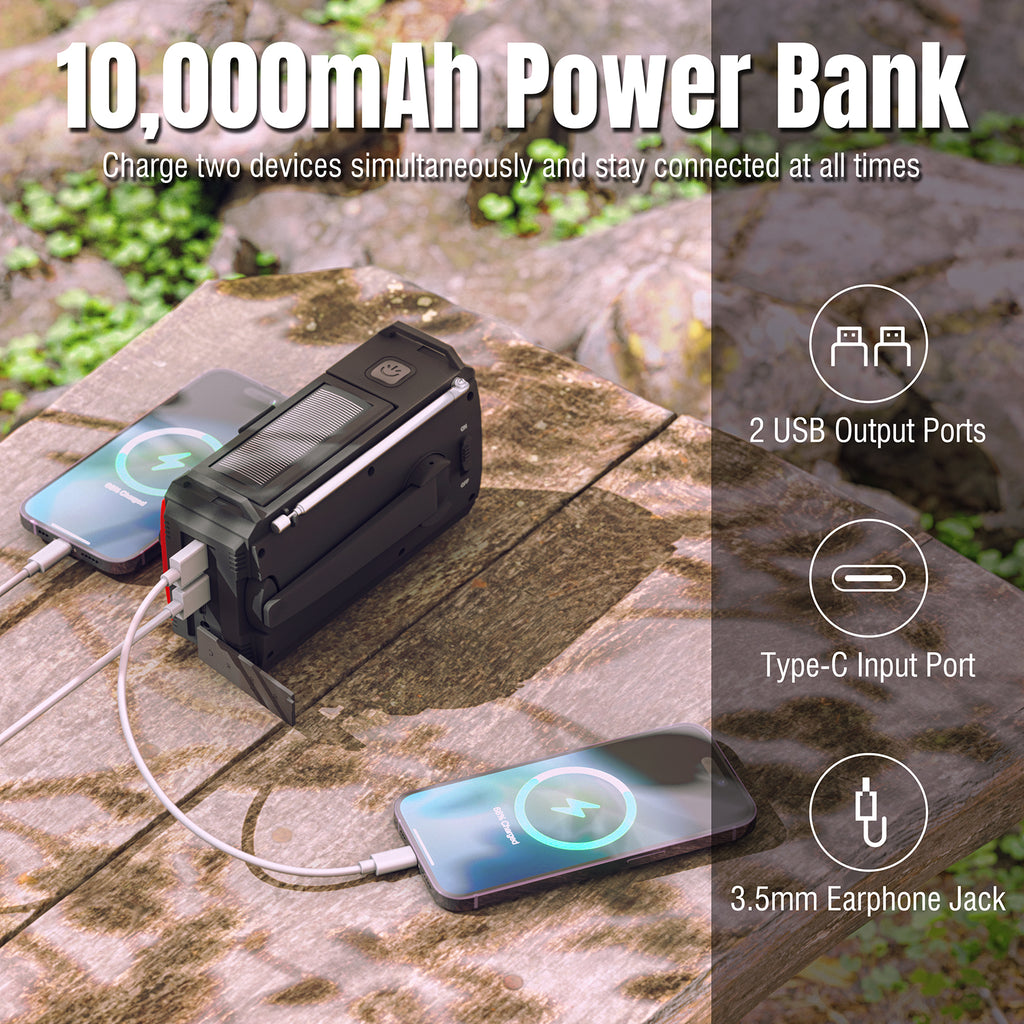 Be prepared for emergencies with the Raddy SW10 Emergency Radio. Stay connected with AM/FM radio, NOAA and alert function, rechargeable battery, solar and hand-crank power options. Includes LED flashlight, SOS alarm, compass and rugged design for outdoor use. Your reliable lifeline in critical moments.