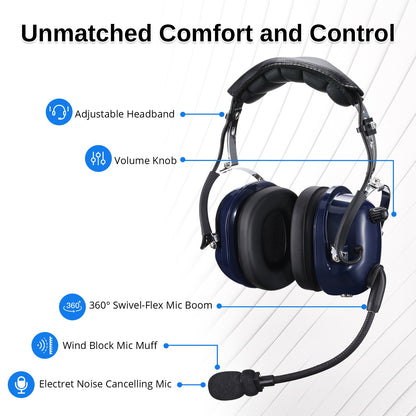 Effortless Adjustments: With a volume knob and push-to-talk button conveniently located on the headset, making quick adjustments has never been easier. Whether navigating heavy air traffic or soaring through the skies, stay in control without missing a beat.