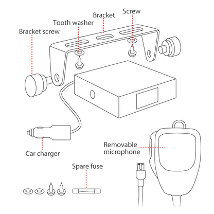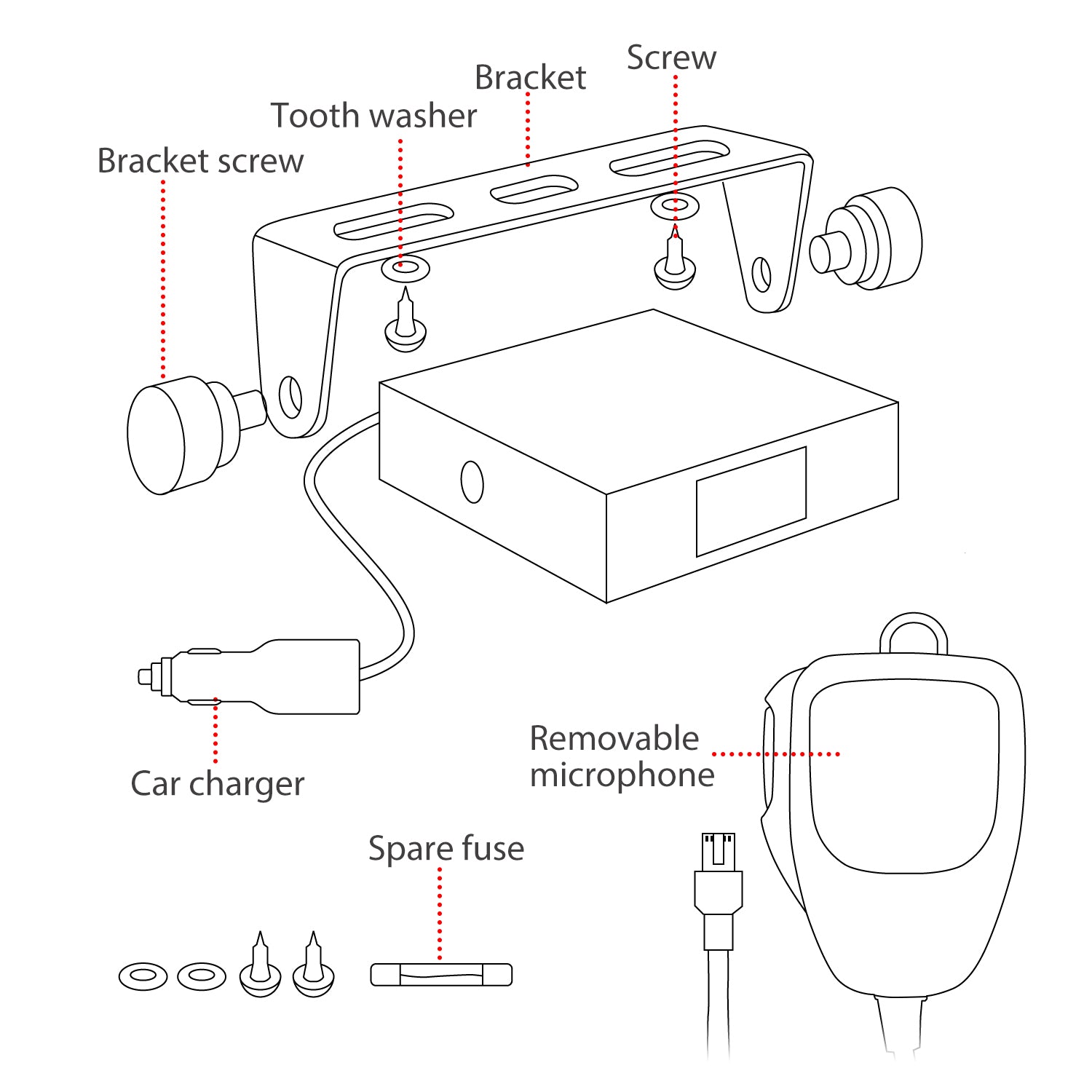 Work with External Speaker Connect the amplifier into external speaker jack, gaining a louder sound at loud vehicles and job sites where hearing radio communication is critical. |