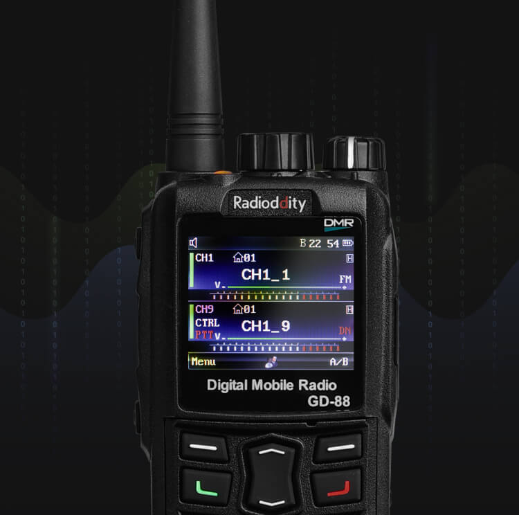 The GD-88 contains two independent VFOs that allow dual-band operation on VHF and UHF channels. With dual mode, the GD-88 allows a smooth transition from communication with conventional analog radios to digital DMR (Tier II) at any time. It also comes with dual-standby to monitor two channels at the same time.