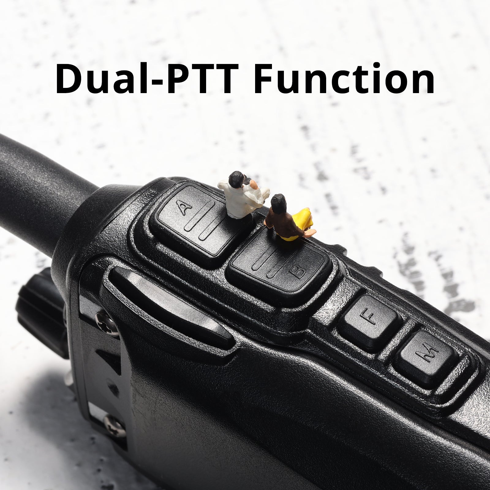 It features Dual PTT buttons so that you can quickly switch between channels without missing a beat.