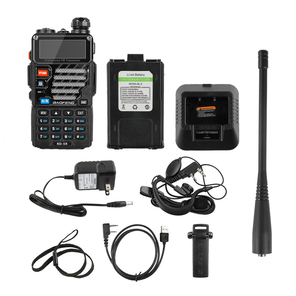 The RD-5R Amateur Radio equipped with 1800 mAh Li-ion Battery. The RD-5R Ham Radio has great compatibility and crystal clear audio, and it's easy to program.